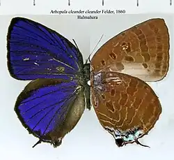 Arhopala cleander is a species of butterfly belonging to the lycaenid family. It was described by Cajetan Felder in 1860.[2] It is found in Southeast Asia (Buru, Ambon, Serang, Borneo, Sumatra, Peninsular Malaya, Burma, Thailand, Sulawesi, Banggai and Selajar).[3][4]
