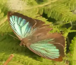 Arhopala hellenore, Doherty's green oakblue, is a species of butterfly belonging to the lycaenid family described by William Doherty in 1889. It is found in Southeast Asia - Assam, Manipur, Burma, Mergui, Thailand, Indo China, Hainan (A. h. hellenore) Sumatra, Peninsular Malaya (A. h. siroes Fruhstorfer, 1914).[2][3]
