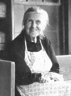 Arie Carpenter (1885-1978)[1] was a resident of Macon County, North Carolina, in the Southern Appalachian Mountains, United States. She was interviewed for the Foxfire Book published in 1972, through which she became known to thousands of readers.[2] High school students interviewed her and reproduced her stories and skills of living in the Foxfire oral history-based books.[3]