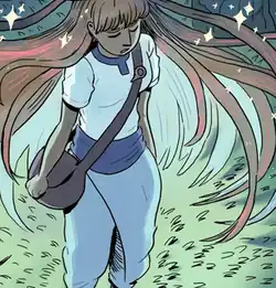 The webcomic Witchy is set in a world where the length of one's hair indicates the magical proficiency one has, and people with long hair are considered enemies of the state. Witchy follows the story of the young witch Nyneve, whose long-haired father was burned at the stake by the kingdom's royal "Witch Guard" while she was still a child. As she grows older, Nyneve has to decide whether she will accept being conscripted into the Witch Guard or go rogue. She hides the length of her hair while outside of her house to avoid conscription, while her classmates at school each have their own problems and ambitions.[1][2]