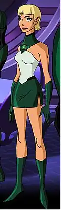 Arisia Rrab is a superheroine appearing in American comic books published by DC Comics, usually those featuring the Green Lantern Corps, an intergalactic police force of which she is a member. Arisia is a humanoid alien with golden-yellow skin, hair and eyes, and has pointed, elven ears.[1]