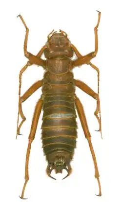 Arixenia esau is a species of earwig in the genus Arixenia (sister to Arixenia camura). It is in the family Arixeniidae, a group composed solely of commensalistic earwigs. Like most other species in Arixeniidae, A. esau is found in the tropics of Indonesia and Malaysia and has only been collected on the island of Borneo.[2][3] The species is heavily associated with its host the hairless bat (Cheiromeles torquatus) and is most commonly collected from the fur of these bats and from caves inhabited by them. Arixenia esau is a rare species and has only been observed infrequently in its natural habitat.[3]