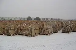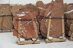 Arizona flagstone is composed of rounded grains of quartz which are cemented by silica. Other minerals are present, mostly as thin seams of clay, mica, secondary calcite, and gypsum. Arizona flagstone is mainly quarried from the Coconino and Prescott National Forests.