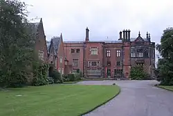 Structural problems continued.[5] In 1813 the house and estate were inherited by Rowland Egerton-Warburton, who was only aged eight. In 1818 plans were drawn up by Lewis Wyatt to rebuild the west front in Neoclassical style, but these were not implemented.[1] Egerton-Warburton came of age (21) in 1826 and decided to completely replace the house. His intention was that the house should reflect the antiquity of his inheritance, but that it should be constructed using techniques which were modern at the time.[5] He chose George Latham as his architect. Latham, who was practising in Nantwich, was at that time in his twenties and was relatively unknown. He submitted four schemes for a symmetrical Gothic house, but these were not accepted. Then Latham prepared new plans which he called "Queen Elizabethan". He suggested that this could be built for about £5,000–6,000.[1] Every feature in the house had to have an exact model in an existing Elizabethan building. Egerton-Warburton and Latham visited 16th-century houses and studied illustrations to ensure that the features were dated correctly to Queen Elizabeth's reign.[6] The first phase of the building took place between 1832 and 1835 when the east, north and west wings of the old building were demolished. The house was equipped with modern plumbing and it was raised on arches above the damp Cheshire clays. The second phase of building work, carried out between 1840 and 1845, replaced the old south front. The final cost of the house was almost £30,000 (equivalent to £3,750,000 in 2023).[7][8]