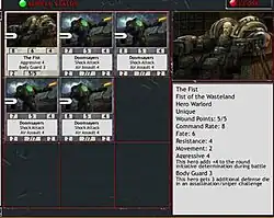 The game is designed to be a hybrid of traditional strategy board games along with some elements of collectible card games. While the cards are not truly collectible, in the sense that the game is complete with a single purchase, it does feature deck design and deck optimization elements. Cards are used to represent all assets in the game, including buildings, units, heroes, tactics, and weaponry. The game board is a hex map representing the wasteland, upon which in-play cards are placed.
