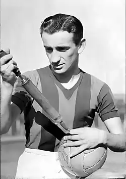 ![]() Farro inflating a football during his tenure on San Lorenzo | |||