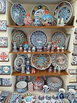 Many Armenians from Kütahya, a city in Turkey, were known for their hand-painted ceramic wares and tiles. In 1919, several master craftsmen were brought to Jerusalem to renovate the tiles covering the facade of the Dome of the Rock. They remained in Jerusalem and developed the art of Armenian ceramics.[15]