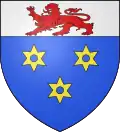 Gules, a lion passant or (armed and langued azure).[1] |