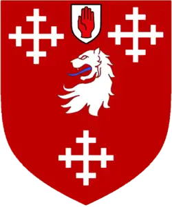 | Arms | Gules a Lion's Head erased between three Cross Crosslets Argent |