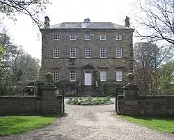The first Arncliffe Hall was constructed in the late 16th century for William Mauleverer, facing north. From 1753 to 1754, a new hall was constructed, on the same site but facing south. It was designed by John Carr, for Thomas Mauleverer.[1] Carr also designed a stable block to the southeast, which was altered in 1905.[2] The hall was grade I listed in 1952,[3] while the stables were grade II* listed in 1966,[2] at the same time as the forecourt and garden walls.[4]