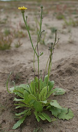 Arnoseris minima is an annual weed of cornfields and fallow fields, favouring infertile, sandy, acidic soils.[12]