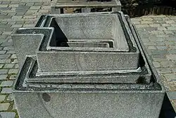 Village-fountain sculptured by the local sculptor Toni Scheubeck on the occasion of the 1200-Jubilee year in 1995. Made of Fürstensteiner granite, the water channels polished, thereby brighter active; the remaining surfaces shaded. Source place and mouth of the watercourse in the fountain are marked with the annual figures 795 and 1995.[21]