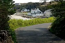 Most of the population lives along the southern and (comparatively sheltered) eastern coast, where the main village, Leabgarrow (Irish: Leadhb Gharbh), is located. The island has been settled since pre-Celtic times, and the few remaining signs of early settlement include a promontory fort to the south of the island[10] and shell middens dotted along the beaches. Its position near the Atlantic shipping lanes was exploited, with a coast guard station and a lighthouse positioned on the most north-westerly point, and a World War II monitoring post.