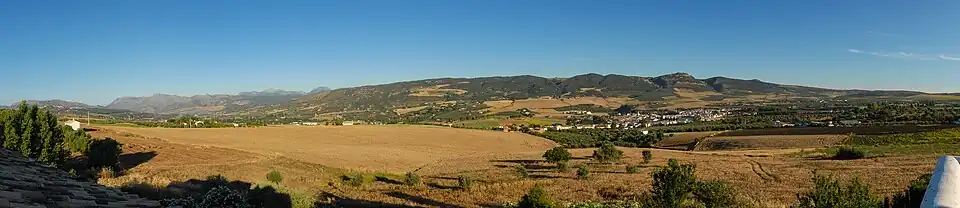 Arriate looks out to the highlands from the slopes of the Guadalcobacín (Guadiaro tributary), in the Ronda depression. This river, which borders the municipality on the north and west, encloses some landscapes of great beauty when the vegetation on the banks close together forming real "gallery-woods". Close to this spot there are fertile plots which reach the boundaries of the town, adding fruit trees and vegetables to the landscape of olive trees and cereals. Arriate, also claims a privileged surrounding, and although it is on the outside of the municipality, acts as a background in which there are the Sierras de Las Cumbres (911 m.) and Salinas (954 m.) mostly covered in holm-oak woods, and the Dehesa de Parchite.