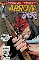 The Arrow primarily operates alone. At one point, he teams up with a number of heroes during a battle in Brinkston — an event whose ultimate outcome convinces him to retire. When the members of the Protectors are asked to face Mr. Monday and re-form the superhero team, the Arrow requests to join his former comrades, but is refused due to his violent approach.