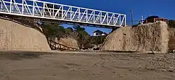 Arroyo de en Medio (Spanish for "in the middle creek") is a 2.5-mile-long (4.0 km)[1] coastal stream in western San Mateo County, California. Arroyo de en Medio rises on the western slopes of Montara Mountain and discharges to the Pacific Ocean at Half Moon Bay at the location of the unincorporated community of Miramar at Miramar Beach. The watershed of Arroyo de en Medio consists of relatively permeable sandy soils capable of significant recharge to its aquifers, which supply considerable potable water to the local area. Arroyo is Spanish for creek; de en Medio means literally "of in between" but a closer more functional translation may be in the middle.
