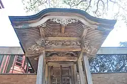 The museum's collection of Asian art features old and new works, including bronze objects, ceramics, textiles, and amber and ivory carvings.[19] The museum's Asian collection was started in 1973 by the museum's first director, Colin Graham.[19] Two Japanese prints, acquired by the museum in the 1950s, were the first two items that formed the Asian collection.[19] Other works from the exhibit includes a Chinese painting valued at C$6 million in 2016, and a Japanese byōbu created by Kanō Sanraku.[19] The byōbu features a depiction of a peacock displaying its plumage next to a pine tree, painted on a gold leaf.[19] The 197 cm (78 in) by 370 cm (150 in) byōbu was donated to the museum in 1995, and was restored with cooperation from the Government of Japan for approximately C$150,000.[19] The byōbu was valued at C$500,000 in 2016.[19] The museum's outdoor Asian garden includes the only Meiji era Shinto shrine in North America.[20]