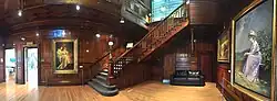 The interior of the building has undergone significant changes since its construction, either conducted by the museum, or by previous owners of the building.[11] However, the building still retains a number of features from its original construction, including its original fireplace, ornate tiles and woodworking on the southeast corner of the second floor.[11] In 2004, several renovation works undertaken on the building, including the reconstruction of the rooftop Palladian window, and providing a seismic retrofit to the building's chimney.[11]