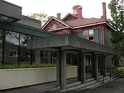 The Spencer Mansion was built in 1889, and was designed by William Ridgeway Wilson.[9] The Spencer Mansion was once a part of a larger property, originally stretching from Fort Street to Rockland Avenue; incorporating a garden, two tennis courts, stables and a coach house. The Spencer Mansion had a belvedere, with a view of the ocean. The Victorian era home was originally built for the Green family, who named the building Gyppeswyk, the Old English name for Ipswich.[10] When Cary Castle, the original Government House, was destroyed by fire in 1903, Gyppeswyck served briefly as the residence of the Lieutenant Governor of British Columbia. The building was donated in 1951 by Sarah Spencer to the institution that became the Art Gallery of Greater Victoria.[1]