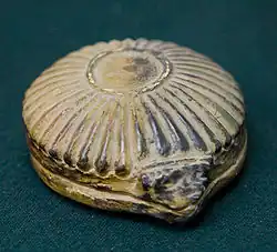 | Women's silver jewelry with the image of God Ḫaldi on the throne and his wife Arubani. Berlin Museum. | Silver cauldron cover with a full-blown pomegranate on top, inscribed as property of King Argishti I.[9] | Carnelian beads, purchased from treasure hunters near Van, Armenia.[5] |
