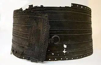 Poorly preserved remains of Urartian mail of Argishti I were excavated at Teishebaini.[14] But almost all bronze Urartian belts don't have a provenience: that is, they're likely loot and may be inauthentic.[15]
