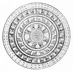 Many features of Urartian art were preserved in the neighboring countries after the fall of Urartu in the 6th century BC. Observations by Boris Piotrovsky suggest that decoration and production techniques of Scythian belts and scabbards were borrowed from Urartu.[3] The Urartian way of decorating cauldrons spread over the ancient world, and it is believed that Armenian art and that of southern Georgia were partly based on the Urartian traditions.[21][23] Urartu used cylinder seals similar to those from other ancient states of the Ancient Middle East. They depicted the moon, stars, religious images and sometimes hunting scenes.