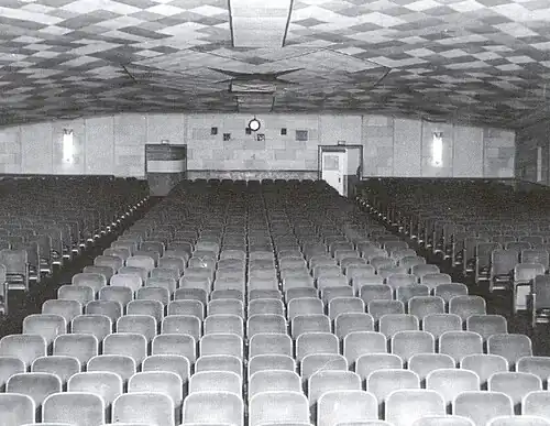 The building includes a full stage and orchestra pit originally intended for vaudeville performances. The Artcraft was built in the neoclassical style and did not originally have a marquee. A set of two original stage flats in a forest motif are still housed backstage. The theater was purchased by Trueman Rembusch in 1936, who facilitated the theaters first renovation in 1936. In 1948, it underwent a second renovation in the Art Deco style that is representative of American movie theaters.[21]