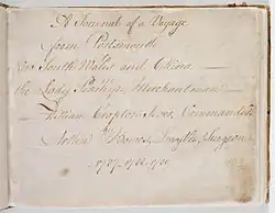 - ^ a b c d "Arthur Bowes-Smyth, illustrated journal, 1787–1789. Titled 'A Journal of a Voyage from Portsmouth to New South Wales and China in the Lady Penrhyn, Merchantman William Cropton Sever, Commander by Arthur Bowes-Smyth, Surgeon – 1787-1788-1789'; being a fair copy compiled ca 1790". catalogue. State Library of New South Wales. Retrieved 1 April 2014.