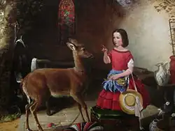 Tait's "The Reprimand" (1852), at the Brooklyn Museum in New York City shows a rural girl "warning" a deer.