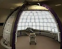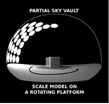 Virtual dome replicates the sky vault with a scanning process for any time and any location on Earth.[14] This type of artificial sky is flexible due to its ability to replicate any type of sky. To limit cost and space, the virtual dome utilizes heavy robotic and fine control systems.[14] The results of the simulation are measured only through a computer screen after a process of combinations of multiple simulations.[14] It provides daylighting simulations on scale models on a rotating platform using an artificial sky and a Sun simulator.[14] The artificial dome was found in the early nineties, and therefore it is the latest type of artificial sky.[14]