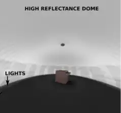 The reflecting dome sky simulator is formed with a reflective opaque dome surface to reproduce uniform and non-uniform skies. The lighting system on the interior of the dome is formed to stimulate sky distributions that are different from a standard overcast sky. The artificial dome uses a reflective surface to illuminate sky distributions and evaluate daylighting on scale models placed on a rotatable tabletop. Also, it can be integrated with the artificial Sun to replicate sunlight. Compared to mirror boxes, reflecting dome skies are more adjustable in utilization and their variants are widely available in the market.[10]