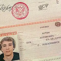 The cover shows Slava's passport, which lists his real name, surname and patronymic.[9]