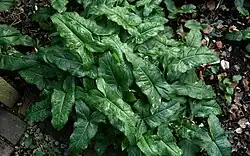 Plants from the British Isles and the Atlantic coast of western Europe with deep green leaves and winter leaves differing in shape from spring leaves have been treated as a distinct subspecies, Arum italicum subsp. neglectum (F. Towns.) Prime.[2] Differences in germination (epigeal in subsp. italicum, hypogeal in subsp. neglectum) and phenology (subsp. italicum beginning growth earlier) have also been reported.[2] However, there are intermediate forms between the two subspecies, particularly on the European mainland, and there have been proposals to merge the two under subsp. italicum.[1][3]