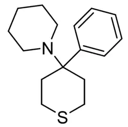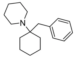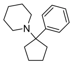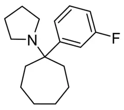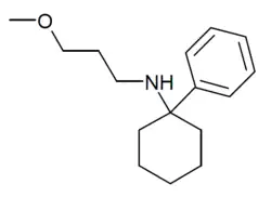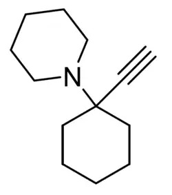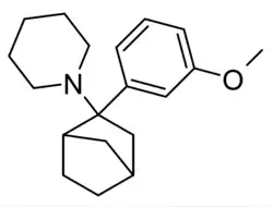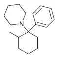 - ^ Iorio MA, Tomassini L, Mattson MV, George C, Jacobson AE (August 1991). "Synthesis, stereochemistry, and biological activity of the 1-(1-phenyl-2-methylcyclohexyl)piperidines and the 1-(1-phenyl-4-methylcyclohexyl)piperidines. Absolute configuration of the potent trans-(-)-1-(1-phenyl-2-methylcyclohexyl)piperidine". Journal of Medicinal Chemistry. 34 (8): 2615–23. doi:10.1021/jm00112a041. PMID 1875352.