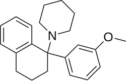 - ^ a b c Ahmadi A, Mahmoudi A (2005). "Synthesis and biological properties of 2-hydroxy-1-(1-phenyltetralyl)piperidine and some of its intermediates as derivatives of phencyclidine". Arzneimittel-Forschung. 55 (9): 528–32. doi:10.1055/s-0031-1296900. PMID 16229117. S2CID 29006399.