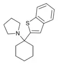 - ^ a b He XS, Raymon LP, Mattson MV, Eldefrawi ME, de Costa BR (April 1993). "Synthesis and biological evaluation of 1-[1-(2-benzo[b]thienyl)cyclohexyl]piperidine homologues at dopamine-uptake and phencyclidine- and sigma-binding sites". Journal of Medicinal Chemistry. 36 (9): 1188–93. doi:10.1021/jm00061a009. PMID 8098066.