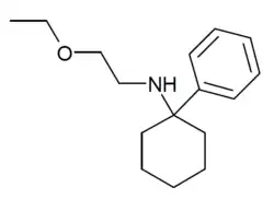 - ^ Sauer C, Peters FT, Schwaninger AE, Meyer MR, Maurer HH (February 2009). "Investigations on the cytochrome P450 (CYP) isoenzymes involved in the metabolism of the designer drugs N-(1-phenyl cyclohexyl)-2-ethoxyethanamine and N-(1-phenylcyclohexyl)-2-methoxyethanamine". Biochemical Pharmacology. 77 (3): 444–50. doi:10.1016/j.bcp.2008.10.024. PMID 19022226.
