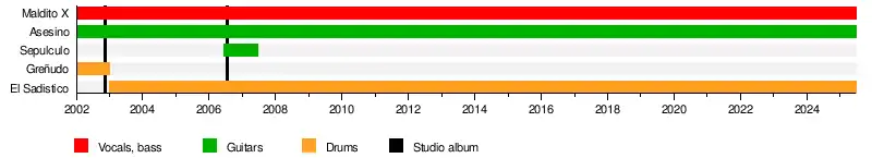 | Members | Asesino (Dino Cazares) Maldito X (Tony Campos) El Sadístico (Emilio Márquez) |