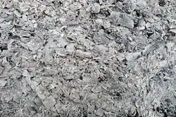 Ash is the solid remnants of fires.[1] Specifically, ash refers to all non-aqueous, non-gaseous residues that remain after something burns. In analytical chemistry, to analyse the mineral and metal content of chemical samples, ash is the non-gaseous, non-liquid residue after complete combustion.