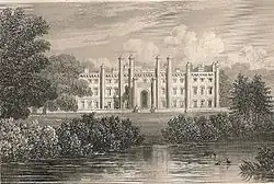 The village of Ashburnham was the home of the Ashburnham family from the 12th century. The family became wealthy through their land holdings in Sussex and around Pembrey in Carmarthenshire, and later from their participation in the Wealden iron industry. Only the cellars remain from the earliest known house on the site, dating from the 15th century. This house was abandoned in the 16th century and confiscated by Queen Elizabeth I. The Ashburnham family recovered their estate under Charles I, and John Ashburnham was a loyal servant of the King. He was forced to sell the estate to the Relf family in the English Commonwealth, to pay fines levied for supporting the King. John Ashburnham recovered the estate again after the English Restoration. His grandson and namesake, John Ashburnham, was created first Baron Ashburnham in 1689. The house was largely rebuilt to designs of the neo-Palladian architect Stephen Wright[2] and the local direction of the builder John Morris of Lewes, ca 1757–61.[3]