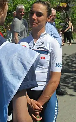 In 2018, she finished second overall in the Giro Rosa,[12] and La Flèche Wallonne Féminine.[13] She also took the final podium place at La Course by Le Tour de France.[14] She took two victories during the season, winning La Classique Morbihan and the Grand Prix de Plumelec-Morbihan on consecutive days,[15] just as she had done in 2017.[16]