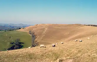 Askerswell civil parish extends from the A35 trunk road on Askerswell Down in the south to the Iron Age hillfort on Eggardon Hill in the northeast and Knowle Hill in the northwest. Its altitude is between about 50 metres (160 ft) where the River Asker leaves the parish in the west up to about 250 metres (820 ft) on Eggardon Hill. The surrounding parishes are Loders to the west, Shipton Gorge to the southwest, Chilcombe to the south, Litton Cheney to the southeast and east, West Compton to the northeast and Powerstock to the north.[11] All of Askerswell parish is within the Dorset National Landscape area.[12]