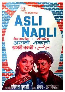 Asli-Naqli (transl. Real and Fake) is a 1962 Hindi film produced by L.B Lachman and L.B Thakur. The film is directed by Hrishikesh Mukherjee and stars Dev Anand, Sadhana, Leela Chitnis, Anwar Hussain, Sandhya Roy and Keshto Mukherjee. The film's music is by Shankar Jaikishan and the lyrics by Hasrat Jaipuri and Shailendra. The film became a box office hit.[1]
