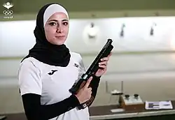 Asma Abu Rabee (Arabic: أسماء أبو ربيع; born 28 September 1991) is a Jordanian sports shooter.[1] Asma started her career in 2012 and in the same year joined the ranks of the Jordanian national team.[2] She competed in the women's 10 metre air pistol event at the 2020 Summer Olympics.[3]