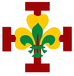 The emblem of the Association des Scouts et Guides du Congo incorporates the color scheme of the flag of the Republic of the Congo.