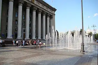Astana Square (Kazakh: Астана Алаңы, romanized: Astana Alañy) or Old Square, formerly known as Red Square and Lenin Square, is a city square in Almaty, Kazakhstan. It is the second largest square in Kazakhstan, after Republic Square. It hosts many public events, concerts, and ceremonies. The square is in front of the Kazakh-British Technical University, the monument of Aliya Moldagulova and Manshuk Mametova, and is on the left side of the Panfilov Street Promenade[1][2] The square used to be named after Vladimir Lenin and a statue of him stood in the center of the square until 1991.[3]