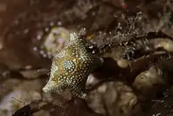 Asterina phylactica is a species of sea star. It can be found in geographically widespread sites around the British Isles and in the Mediterranean Sea. It has five arms, is about 1.5 cm across and is of a green colour with central brown markings.[2] The species was formally described in 1979 and is very similar to Asterina gibbosa.