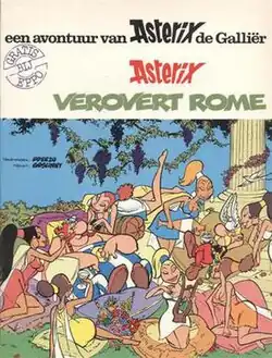 Asterix Conquers Rome (French: Les 12 Travaux d'Asterix, literally "The 12 Tasks of Asterix"), first published in 1976, is the comic book adaptation of the animated Asterix film The Twelve Tasks of Asterix and "unofficially" the twenty-third Asterix volume to be published. The comic follows the movie very exactly. It has very rarely been printed and is not widely known even amongst Asterix fans. The English translation has only been printed as part of a one-off comic book annual, the Asterix Annual 1980. It is thus often excluded from "canonical" lists of Asterix volumes with the subsequently published Obelix and Co. typically being listed as the "official" twenty-third volume.[1] An unauthorized English language digital edition in CBR format, titled The Twelve Tasks of Asterix, is also known to exist.