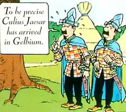 - This album features a small cameo on page 31 from the two detectives Thomson and Thompson from the world famous Belgian comic strip Tintin, who characteristically mispronounce the name of Julius Caesar. The scene is even drawn in a ligne claire style similar to that of Hergé, the author of the Tintin comics.