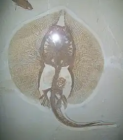 - ^ a b c d e f g h i Carvalho, M.R.; Maisey, J.G.; Grande, L. (2004). "Freshwater stingrays of the Green River Formation of Wyoming (early Eocene), with the description of a new genus and species and an analysis of its phylogenetic relationships (Chondrichthyes, Myliobatiformes)". Bulletin of the American Museum of Natural History. 284: 1–136. doi:10.1206/0003-0090(2004)284<0001:FSOTGR>2.0.CO;2. hdl:2246/452.